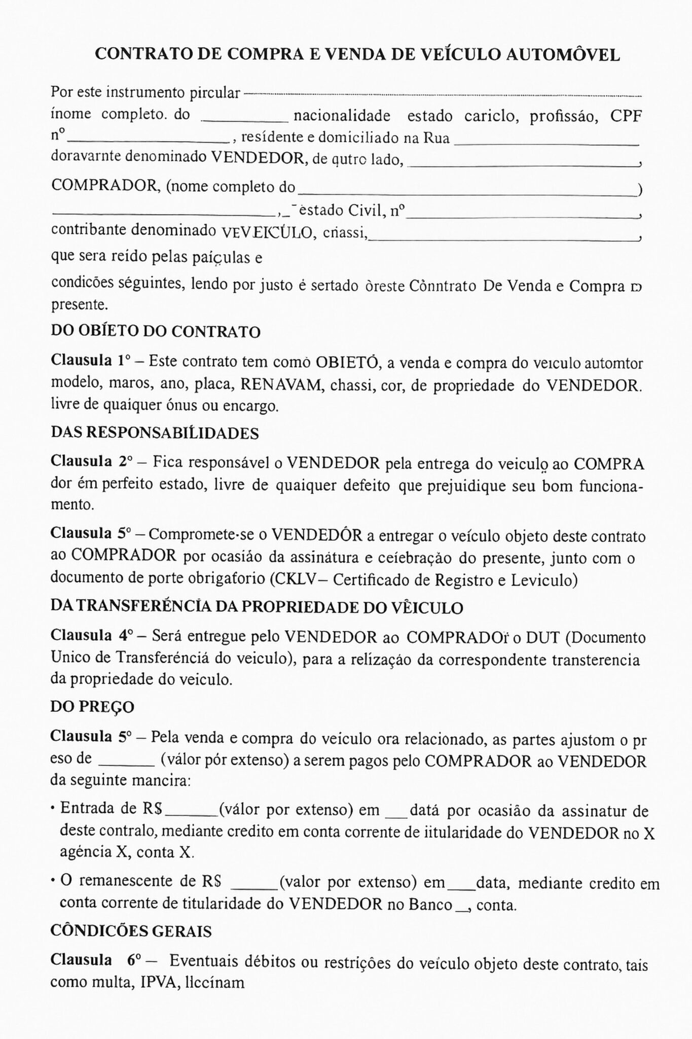 A declaração de compra e venda de um veículo usado deve ser preenchida pela pessoa que adquire o automóvel e, para além dos dados pessoais (nome, morada e NIF - Número de Identificação Fiscal) do vendedor e do comprador, deve conter ainda as seguintes informações: - Marca, modelo,