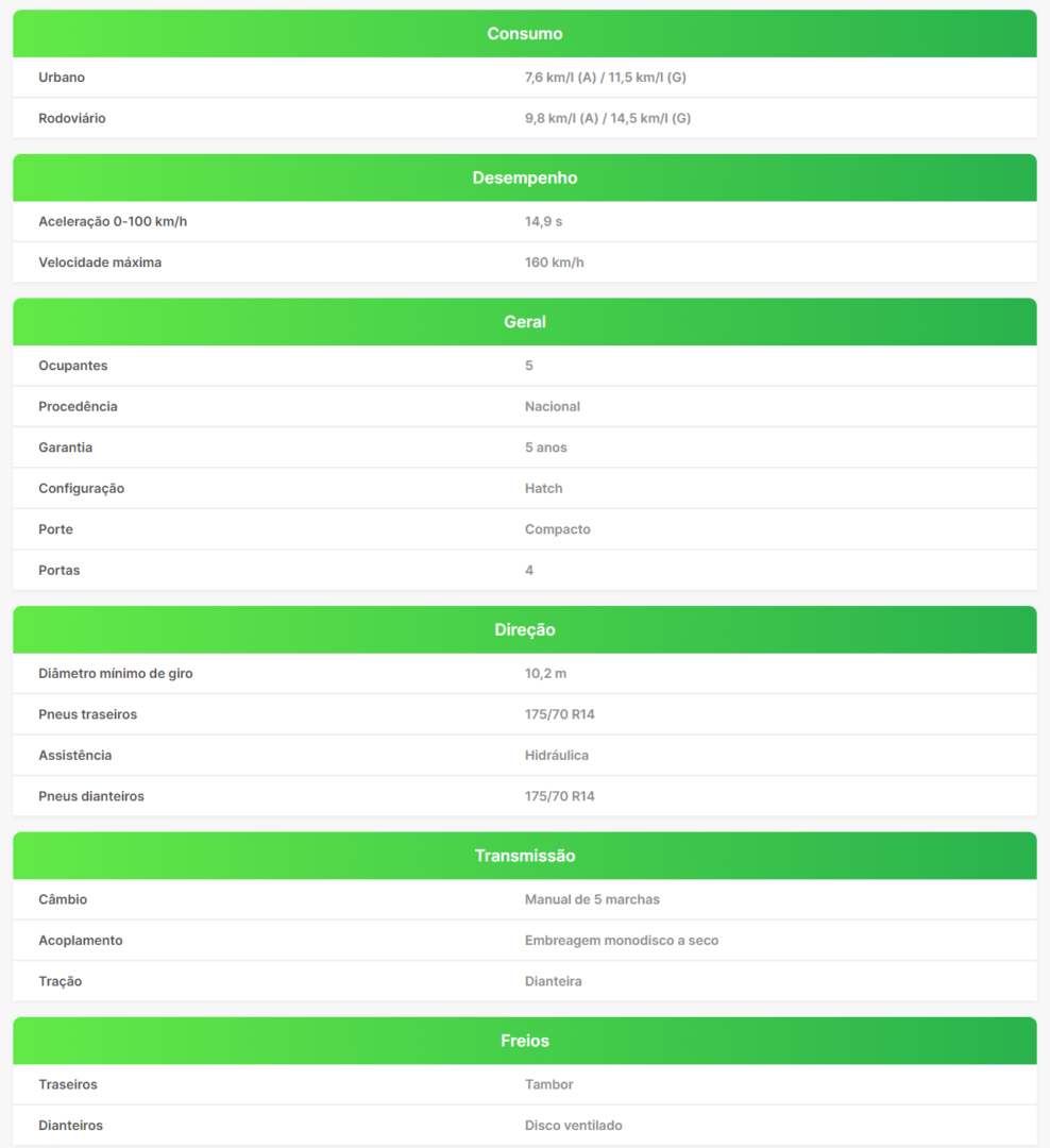 Imagem mostrando a ficha técnica básica de um Hyundai HB20 2015, versão ...
